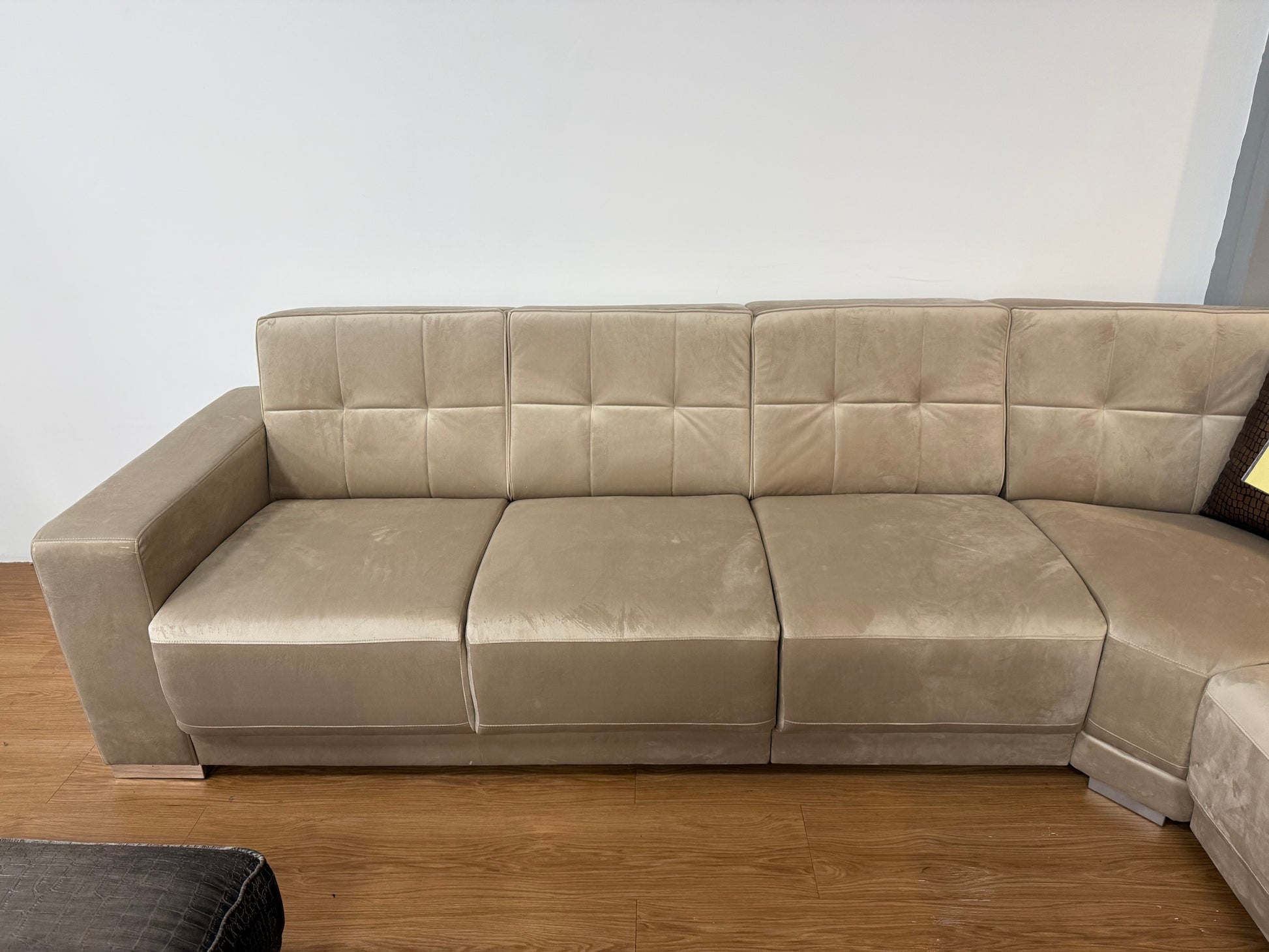 De King hoekbank doet zijn naam eer aan: royaal, comfortabel en perfect voor wie houdt van veel zit- en loungeruimte. Dankzij het strakke, tijdloze design en de zachte bekleding past deze bank moeiteloos in zowel moderne als klassieke woonkamers.